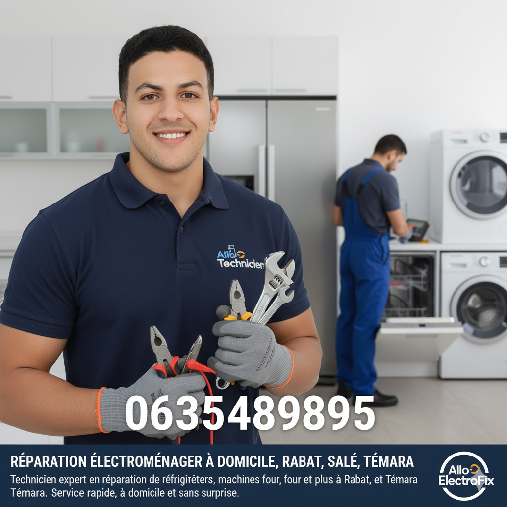 Appelez Allo Technicien au 0635489895 pour une réparation à domicile rapide et professionnelle à Rabat, Salé et Témara.